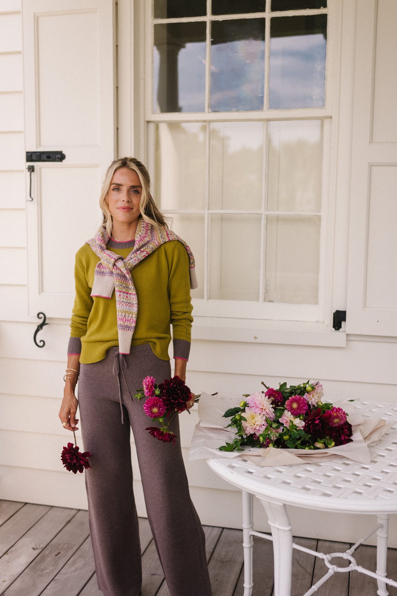 Julia: I love looking outside fashion for ideas. For this collection I kept returning to interiors— rooms, trims, tilework— and the way colors sit together. I wanted more geo and less floral for fall. The geo you’ll see was sparked by tile patterns I kept collecting. Color-wise, we paired beautiful staples (dune, chartreuse) with statement moments (fair isle, geo) so you can decide how bold to go.